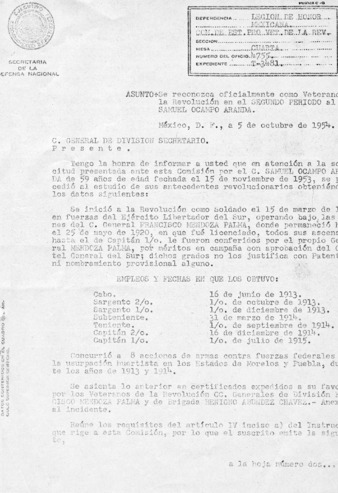 Expediente del veterano Samuel Ocampo Aranda