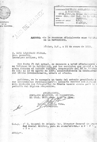 Expediente del veterano Luis Liquidano Flores