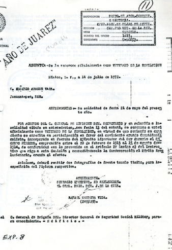 Fondo: Instituto Pro Veteranos de la Revolución del Sur/1. Serie: Expedientes de veteranos