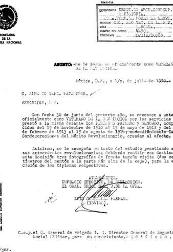 Expediente del veterano Alberto Tapia Matamoros