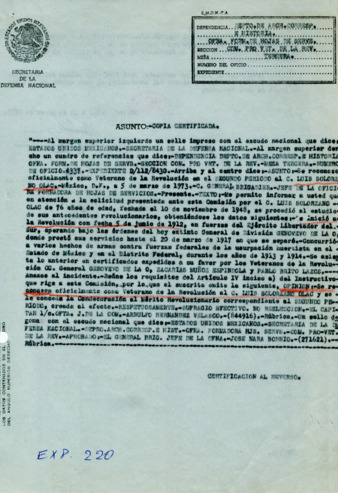 Expediente del veterano Luis Solorzano Olac