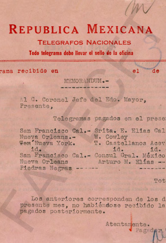 Fondo: Fernando Torreblanca/2. Serie: Secretaría Particular de la Presidencia de la República/2.10 Subserie: Telegramas