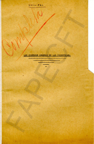 Obra sobre los Consejos Obreros en las Industrias, en la que se estudia un reglamento administrativo del Consejo Industrial y dos proyectos para una ley del trabajo y la administración de los Consejos Industriales.