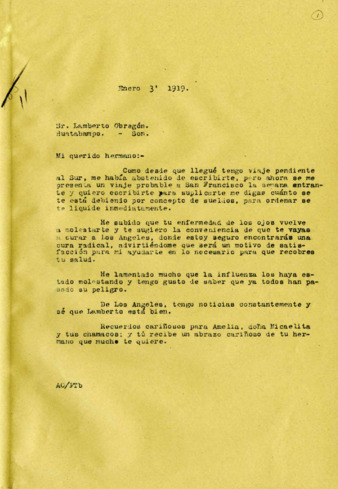 Fondo: Álvaro Obregón/2. Sección: Estancia en Sonora/2.7 Serie: Correspondencia 1919, primera mitad (sub-serie original)