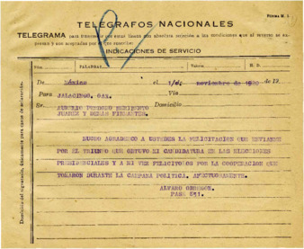 Fondo: Álvaro Obregón/3. Sección: Primera campaña política/3.5 Serie: Correspondencia 1920 (expedientes integrados)
