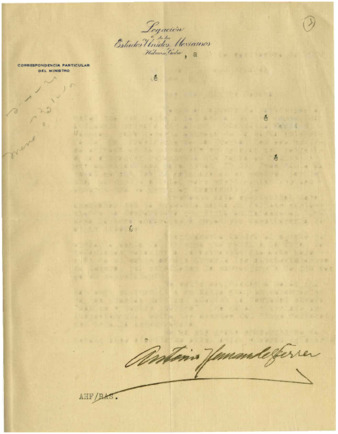 Correspondencia entre el Sr. Antonio Hernández Ferrer, Ministro de la Legación de México en Cuba y el Gral. Alvaro Obregón, relativa a los informes que envía el primero sobre las manifestaciones en favor del Gral. Obregón en Cuba; felicita al Gral. Obregón por su triunfo electoral y anexa un artículo de periódico titulado "El Presidente Electo", LA PRENSA, La Habana, Cuba, Nov. 2, 1920.
