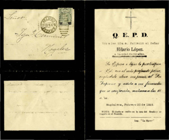 Esquela de los funerales del Sr. Hilario López enviada a Ignacio Terminel.