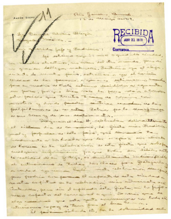 Fondo: Álvaro Obregón/3. Sección: Primera campaña política/3.1 Serie: Correspondencia 1919, segunda mitad (sub-serie original)