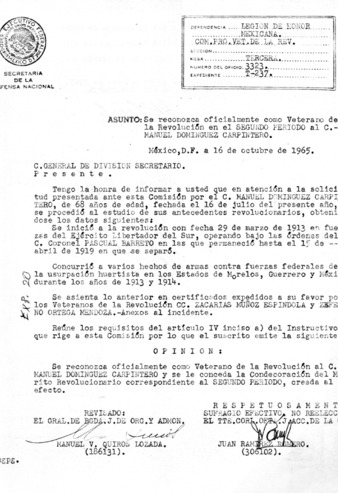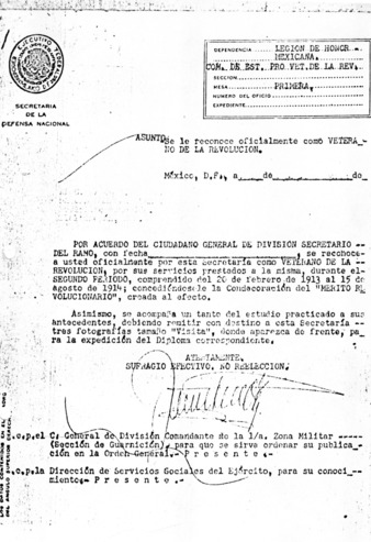 Fondo: Instituto Pro Veteranos de la Revolución del Sur/1. Serie: Expedientes de veteranos