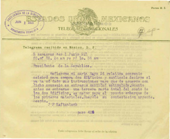 Fondo: Fernando Torreblanca/2. Serie: Secretaría Particular de la Presidencia de la República/2.10 Subserie: Telegramas