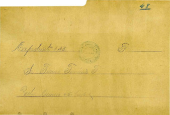 Portada con el sello del Comité Pro-Serrano titulada "Expediente #47 "F". Sr. Figueroa Carlos. Agente Confidencial. Ciudad". Recibo firmado por $10,000.00 que le fueron entregados al Sr. Carlos Figueroa por el Sr. Justo A. Santa Anna, Subsecretario del Comité Pro-Serrano. El General Arturo Lazo de la Vega, Secretario del Comité Pro-Serrano firma una carta identificando a Carlos Figueroa como Agente Confidencial del Comité y agradece las atenciones que se le brindan.