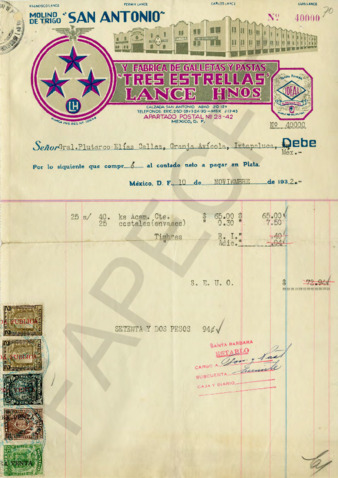 Fondo: 15. Plutarco Elías Calles/15.9. Serie. Correspondencia Familiar/15.9.6. Subserie. Pólizas de la Hacienda Santa Bárbara