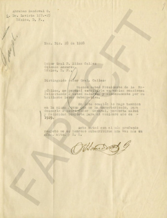 Carta de Abraham Sandoval G. al Gral. PEC, deseándole feliz Año Nuevo.