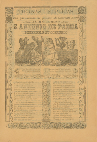 2 páginas color amarillo impresas en offset: 30 x 20 cm; Fecha de publicación no identificada | Fragmento de la primera estrofa: "¡Dios mío, dios mío ten piedad de este mi dolor profundo, porque he quedado en el mundo entregada a la horfandad!”
