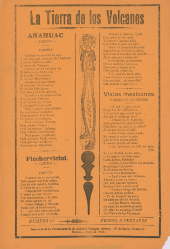 La tierra de los volcanes: Anáhuac: canción, parodia ; Flechervicini: canción, parodia ; Vistas mexicanas: parodia de los versos