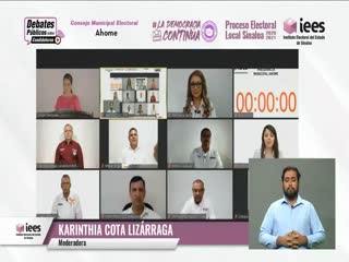 Participantes en el debate: Moderador: Patricia Figueroa, Candidatos a presidencia municipal: Laura Valenciana Tamayo, Celia Gloria Chávez Carrasco, Virginio Sánchez Sarmiento, Claudio Liliana Valdez Aguilar, Guadalupe de la Rosa Zatarain, María Alicia Valdez Medina, Luis Ernesto Gallardo Quintero | Partidos políticos que particiPartido Acción Nacional en el debate: Partido Revolucionario Institucional -- Partido Encuentro Solidario -- Fuerza por México -- Candidatura común (MORENA-Partido Sinaloense) -- Partido del Trabajo -- Movimiento Ciudadano -- Partido Acción Nacional.