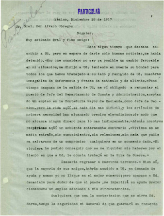Fondo: Álvaro Obregón/3. Sección: Primera campaña política/3.4 Serie: Archivo del general Obregón (sub-serie original)