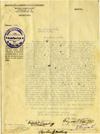 Fondo: Álvaro Obregón/4. Sección: Presidencia de la República Mexicana/4.1 Serie: Correspondencia (expedientes integrados)