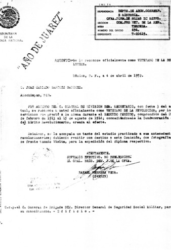 Expediente del veterano Ramón Sandoval Guerrero