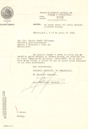 Carta de Gustavo Díaz Ordaz a Daniel Cosío Villegas