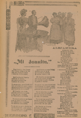 Fragmento de la primera estrofa: "Adelita se llama la joven que yo quiero y no puedo olvidar; en el mundo yo tengo una rosa y con el tiempo la voy a cortar.” | 1 hoja color rojo impresa en offset: 30 x 20 cm; Fecha de publicación no identificada