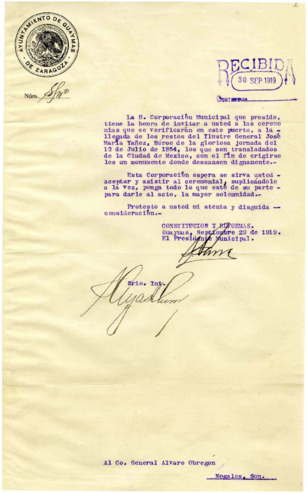 Fondo: Álvaro Obregón/3. Sección: Primera campaña política/3.2 Serie: Correspondencia 1919 (expedientes integrados)