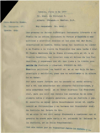 Carta del Cap. Hiram Toledo al Gral. PEC, deseándole feliz Año Nuevo.