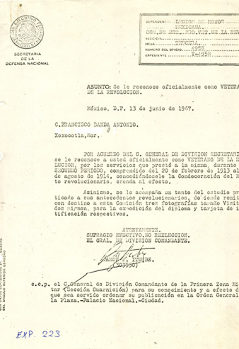 Fondo: Instituto Pro Veteranos de la Revolución del Sur/1. Serie: Expedientes de veteranos