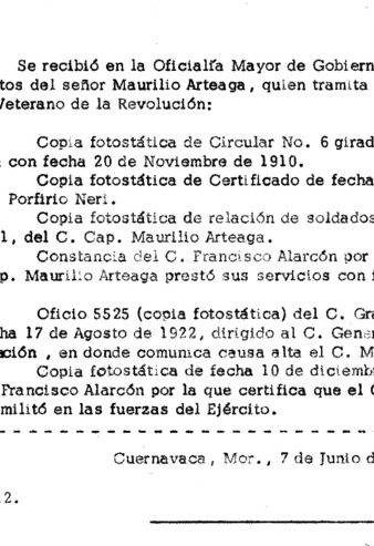 Expediente del veterano Maurilio Arteaga