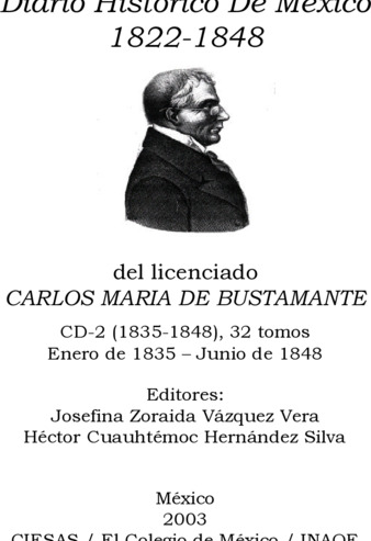 Obra de dominio público de acuerdo con el artículo 29 de la Ley de Derechos de Autor, México. Texto vigente. Última reforma publicada DOF 01-07-2032, Investigadores que colaboraron en la revisión de las minutas escritas por don Carlos para la presente edición, Josefina Zoraida Vázquez Vera, Anne Staples, Luis Aboites [y otros veintidós] | La obra original en la que se basa este archivo digital es una versión facsímil que fue publicada en 2 discos compactos. El CD-2 (1835-1848), consta de 32 tomos de Enero de 1835 a Junio de 1848, e incluye los anexos. -- La versión electrónica estuvo a cargo de Aurelio López López con el apoyo del INAOE, isbn 9684964471 --