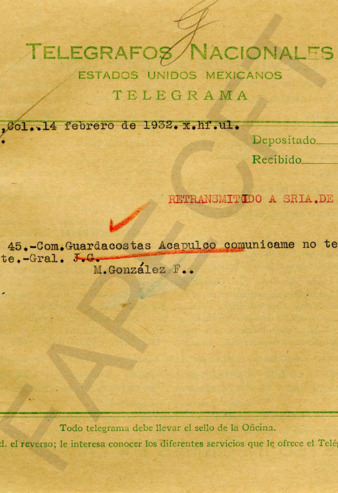 El Gral. M. González F., comunica que los guardacostas de Acapulco se quedaron sin combustible.