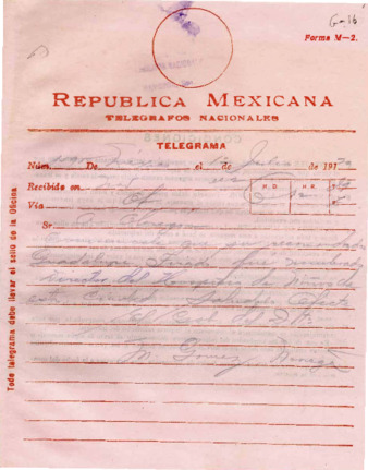 Fondo: Fernando Torreblanca/2. Serie: Secretaría Particular de la Presidencia de la República/2.10 Subserie: Telegramas