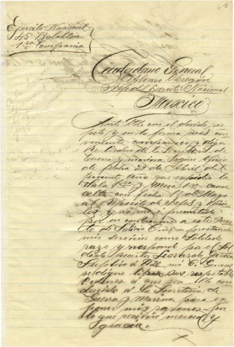 Carta del Sr. Octaviano García al Gral. Alvaro Obregón pidiendo recomendación para la Secretaría de Guerra y Marina. Exp. G-8