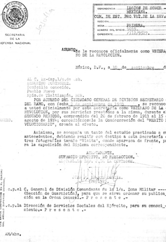 Fondo: Instituto Pro Veteranos de la Revolución del Sur/1. Serie: Expedientes de veteranos
