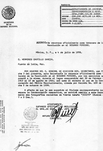 Fondo: Instituto Pro Veteranos de la Revolución del Sur/1. Serie: Expedientes de veteranos