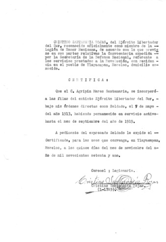 Fondo: Instituto Pro Veteranos de la Revolución del Sur/1. Serie: Expedientes de veteranos