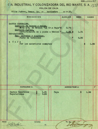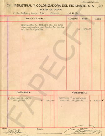 Fondo: 15. Plutarco Elías Calles/ 15.9. Serie. Correspondencia Familiar/15.9.2. Subserie. Pólizas de la Compañía Industrial y Colonizadora del Río Mante, S.A.