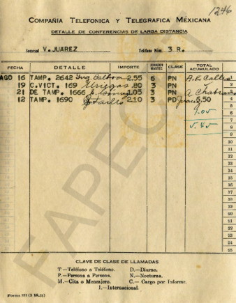 Fondo: 15. Plutarco Elías Calles/ 15.9. Serie. Correspondencia Familiar/15.9.4. Subserie. Pólizas de la Hacienda San Fernando