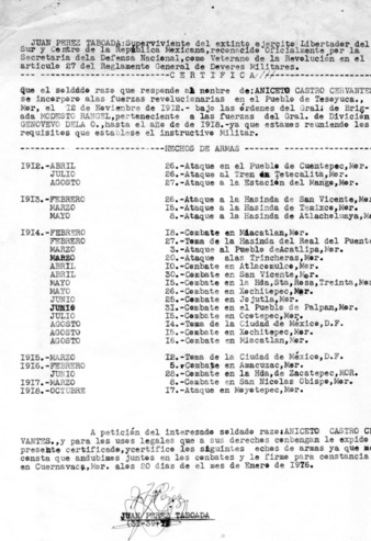 Expediente del veterano Aniceto Castro Cervantes