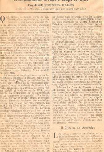 Artículo periodístico titulado México y la Guerra Civil Española de la autoría de José Fuentes Mares, en el que se destaca la labor del gobierno mexicano en la creación de una escuela destinada a los niños españoles refugiados, así como al traslado a México de destacados intelectuales españoles, víctimas de la Guerra Civil. Asimismo, se hace referencia a la formación de la Casa de España y El Colegio de México.