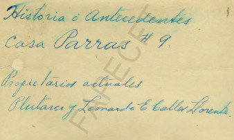 Lista de especificaciones para la construcción de la casa número 9 de la calle de Parras. Documentación relativa a la adquisición del bien inmueble anteriormente mencionado.