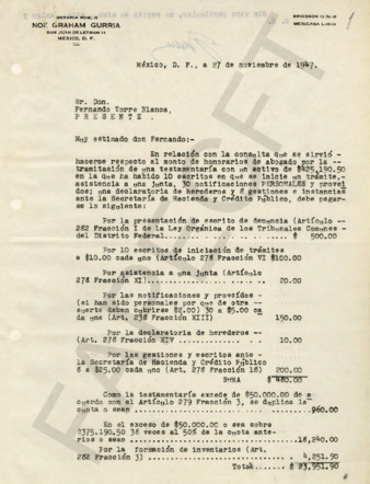 Noe Graham Gurría presenta a Fernando Torreblanca el presupuesto por trámite de testamentaría.