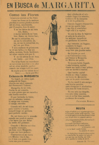 En busca de Margarita. Como las flores / camaguella aumentada por Gpe. Chávez. En busca de Margarita / Policarpo Romero. Rosita / Amado R. Vicario