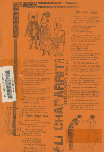 1 hoja color anaranjado impresa en offset: 30 x 20 cm; Fecha de publicación no identificada | Fragmento de la primera estrofa: "Chaparrita, yo ya me voy para el puerto de Mazatlán, voy a ver a mis amores que me mandaron llamar.”