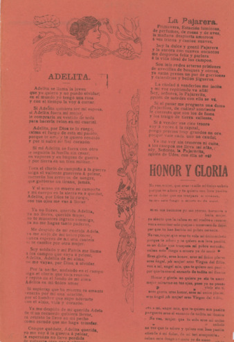 Adelita. La pajarera. Honor y Gloria
