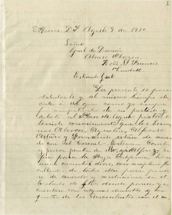Carta del Sr. Timoteo Casas Rosales al Gral. Alvaro Obregón, informándole del acuerdo entre los hermanos Alcocer y el Corl. Esteban Cantú para organizar una revuelta en el estado de Guanajuato.