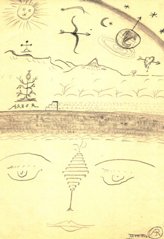 Dibujos realizados por Alfonso Reyes a lápiz y en hojas de papel bond.