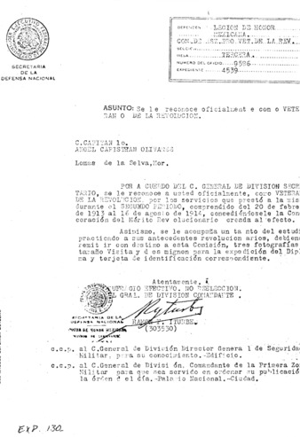 Expediente del veterano Joaquín Cardoso Manzanarez