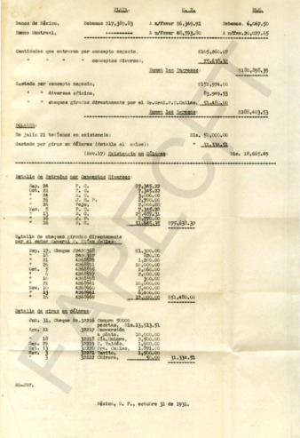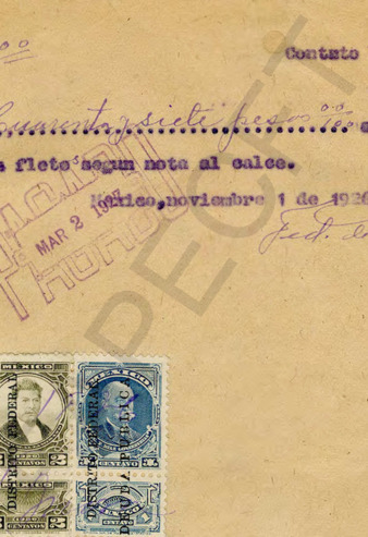 Facturas, notas, recibos y pedidos de materiales de construcción para las casas del Gral. PEC en la Hacienda Santa Bárbara.