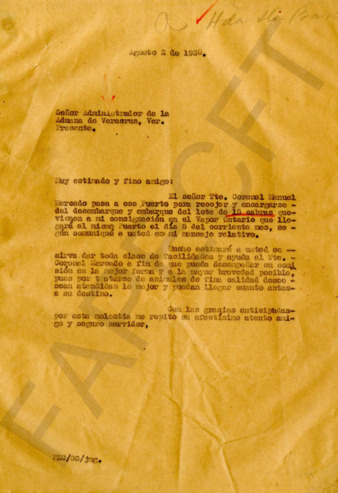 Juan F. Acosta, Secretario de la Comisión Nacional de Caminos, informa a Soledad González que el Presidente de ésta Comisión recibió el oficio del Gral. PEC, Presidente de la República, en el que agradece el préstamo de un camión para transporte de maquinaria de la Hacienda Santa Bárbara. El Ing. Mariano Moctezuma Vocal representante de la Secretaría de Comunicaciones, notifica a Rafael Valdez, administrador de la Hacienda Santa Bárbara, que no es posible sustituir por otro el camión accidentado. Pregunta si puede recoger la pipa de agua que está a su servicio.